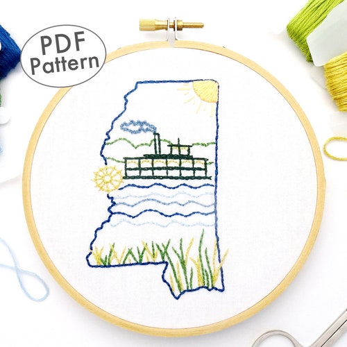 Mississippi Hand Embroidery Pattern River Paddleboat Digital Etsy