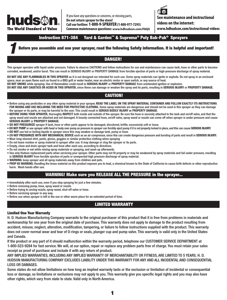 . 82 Only 10999. Hudson Pump and Equipment A Division of Tencarva Machinery 3524 Craftsman Boulevard Lakeland Florida 33803. Hudson Professional Acid Sprayer 16-Gallon Capacity Model 320310.