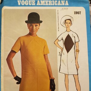 1960s Fabulous Bill Blass Dress Pattern Vogue Americana 1875 Loose Fitting A Line Dress Back Inverted Pleat Martingale Belt Patch Pockets Bust 36 Vintage Sewing Pattern